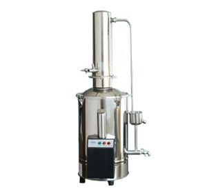 蒸餾水器是用電加熱自來(lái)水制取純水。化驗(yàn)室等部門(mén)使用蒸餾水器一般都是采用優(yōu)質(zhì)的不銹鋼材料,經(jīng)過(guò)特殊處理后加工而成。這樣不僅充分保證了蒸餾水的質(zhì)量,而且也大大提高了使用壽命。